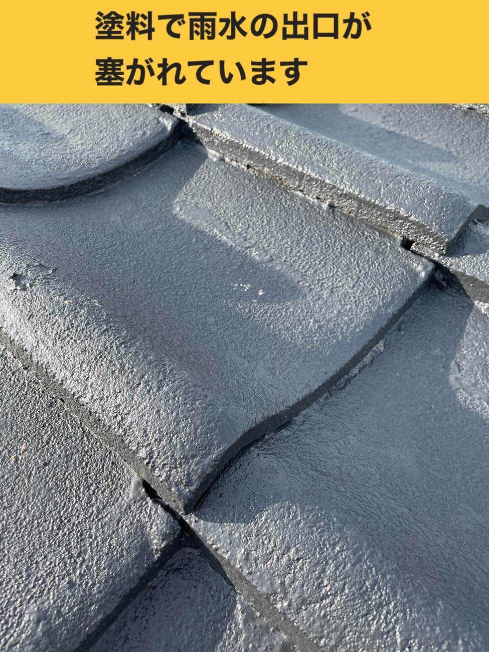 以前の屋根塗装工事の際に、瓦の隙間(雨水の排水出口)が塗料で塞がれてしまっていたのです。