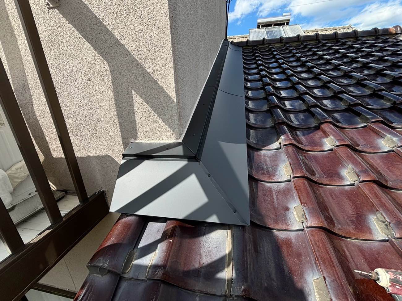 こんにちは!街の屋根やさん筑紫野店です。前回の記事では、小郡市のお客様宅での現地調査の様子をお伝えしました。和室の天井、それもエアコンの至近距離に広がった雨染み。その真犯人は、瓦の割れではなく、外壁と屋根がぶつかる境界線「取り合い部分」の防水機能の喪失でした。 今回の記事では、特…