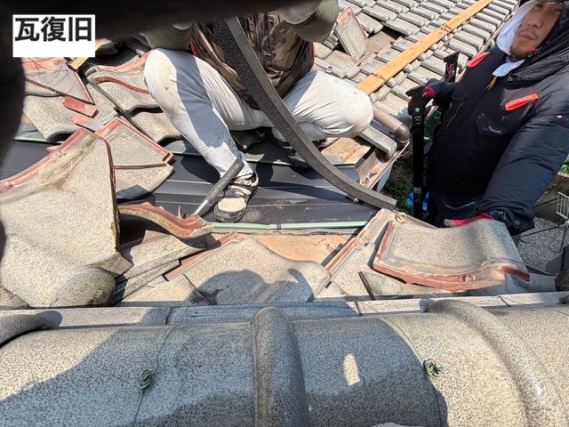 強風の影響で瓦が浮き、一部にひび割れが生じていました。